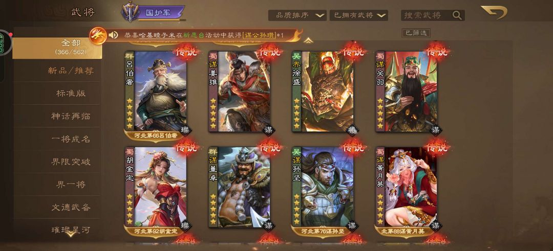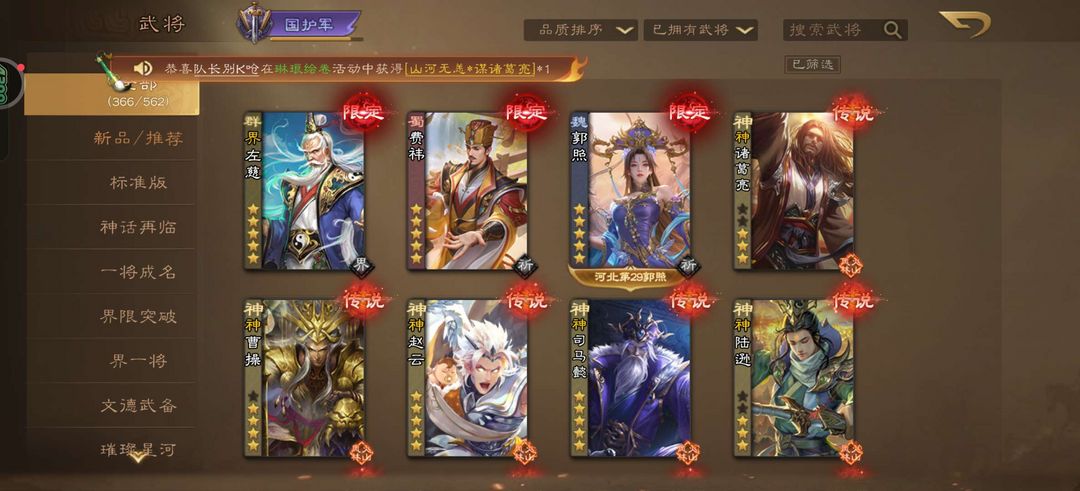 游戏区服:三国杀OL-4399-震古铄今