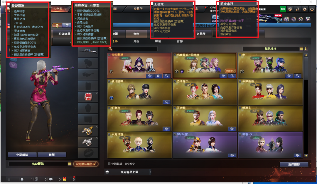 装备描述:排位:可以---------------------爆破四防:幻神2皮+音效(23白鲨、电流骇客皮肤)、M200-竞技荣光、98K星神、、、、、、3个COP雷霆王者、柯尔特竞技荣光、23白鲨柯尔特、、、、、G36幻影、玄豹白虎、QBZ金色蔷薇、、、幻神音效、星神音效、毁灭音效、黑骑士音效、、、6套竞技荣光、1套玄豹、2套雷霆王者、、、爆破四防(传说影煞、云悠悠、隼、王者炫、暗夜审判)