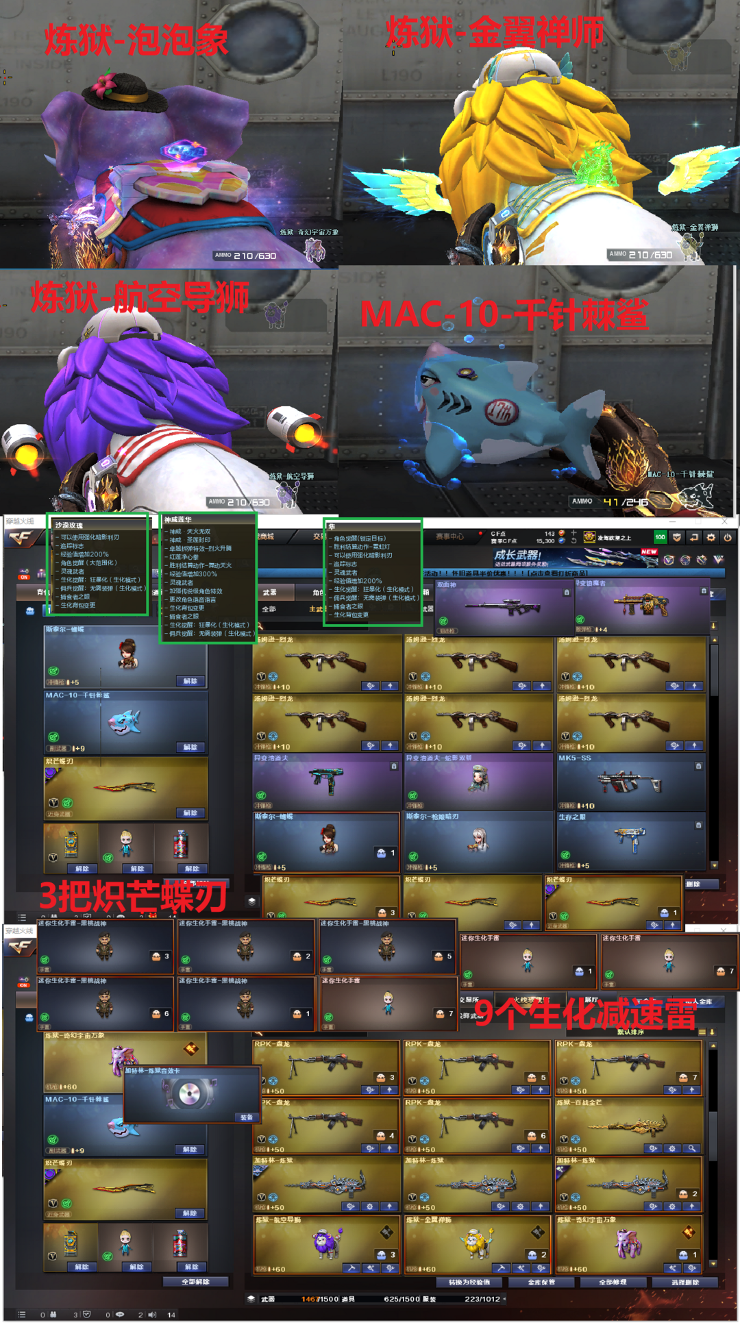 限制: 租号2次及以上 |装备描述:排位:可以、、、、、、、、、、双清道夫无限卡子弹、、、、生化四防全装极品(生化模式换背包、看血量):无需换弹、6烈6盘、炼狱+音效、八面凌龙、炼狱-泡泡象、炼狱-金翼禅师、炼狱-航空导狮、斯太尔蝴蝶、斯泰尔枪娘暗刃、异变清道夫-小人枪、异变清道夫、异变镇魔者、双面神、死亡之眼、MAC千针棘鲨、3把炽芒蝶刃、手斧镜、炽芒蝶刃、9个生化减速雷、超级对讲机、弹匣都有、、、、、、、、、、爆破四防:幻神2皮+音效(宠儿、23白鲨皮肤)、98K星神、、、、、USP冥王、冠军之特、G36幻影、神威天绫、FAMAS G2-天戎、神威天绫、白虎、QBZ金色蔷薇、、、幻神音效、裁决音效、星神音效、幻影音效、白虎音效、蔷薇音效、炼狱音效、、、1套雷霆、7套电竞装甲、2套竞技荣光、、、生化四防(神威莲华、沙漠玫瑰、隼、礼物老人)、爆破四防(传说艾莉莎、传说星骇、云悠悠、鹰)