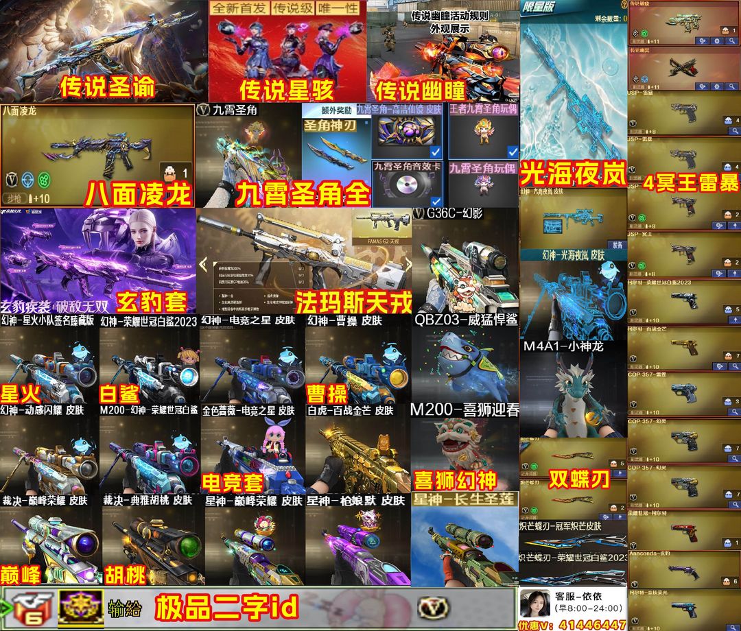 限制: 租号4次及以上 | 撤单率<50%才可租用此帐号装备描述:恶意使用外挂,按违规时间律师起诉索赔。 【装备道具】:极品id❤满九霄圣角❤满级八面凌龙❤天戎❤G36C幻影❤光海夜岚幻神❤星火小队幻神❤白鲨幻神皮肤❤世冠白鲨幻神❤电竞直星幻神❤动感闪耀幻神❤曹操幻神❤幻神喜狮迎春❤幻神竞技荣光❤王者幻神❤M200无畏金戈❤胡桃裁决❤巅峰荣耀裁决❤全音效卡❤传说幽瞳❤传说星骇❤传说圣谕❤传说幽瞳❤传说破晓❤星神巅峰荣耀/星神璀璨/星神枪娘默/王者星神/王者星霆/星神长生圣莲❤法玛斯天戎❤冠军炽芒蝶刃❤白鲨蝶刃❤USP冥王❤白虎百战金芒/白虎暗星/白虎大汉风骨/王者白虎/Scar玄豹套❤qbz电竞之星/QBZ女团/Qbz天罚/Qbz威猛悍鲨/王者芳薇/qbz银翼❤❤王者玄武/王者星光/王者之决/凤吟之魄❤幻神音效卡/星神音效卡/裁决音效卡/白虎音效卡/qbz音效卡电竞之星/雷神音效卡❤九霄音效卡/朱雀电竞之星音效卡/天罚音效卡/黑骑士音效卡❤USP雷暴/USP冥王/柯尔特百战金芒/柯尔特竞技荣光/COP雷霆王者/世冠柯尔特/COP幻灵/cop雷霆/MAC千针棘鲨/USP狮子❤️毒蜂/斯泰尔蝴蝶/生化手雷/蛇影双骄/猎手生化❤️满生化/6烈龙6盘龙炼狱