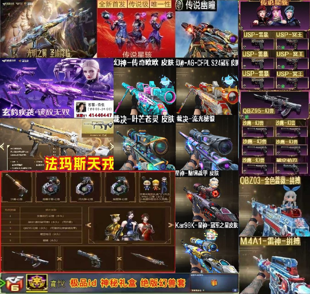 限制: 租号5次及以上 | 撤单率<50%才可租用此帐号装备描述:【极品金色二字ID,幻兽5套,4传说,最新活动全部拉满,该有的枪全有,最新皮肤基本都有,6盘6列!】传说星骇/传说圣谕/传说夜影/传说幽瞳★幻神-AG-CFPL S24冠军 皮肤/幻神-欧欧 皮肤/幻神-荣耀世冠白鲨2023 皮肤/星神-黯钢战甲 皮肤/Kar98K-星神-冠军之星皮肤/星神-漫游/星神-璀璨皮肤/毁灭-定军扬威/裁决-叶芒苍灵 皮肤/裁决-流光秘银/雷神-拼搏/雷神-白鲨雷神-荣耀之魄/白虎-百战金芒 皮肤/白虎-白鲨-CFPLS23冠军/Scar Light-白虎-暗星/QBZ03-AG-CFPLS19冠军/QBZ03-传奇宠儿/QBZ03-金色蔷薇-拼搏/屠龙-破浪逐光 皮肤/屠龙-星耀/幻神音效卡/星神音效卡/天罚音效卡/雷神音效卡/火麒麟音效卡/毁灭音效卡/裁决音效卡/炼狱-百战金芒音效卡/★FAMAS G2-天戎/炼狱-百战金芒/Anaconda-玄豹/USP-冥王(3)/★幻兽套装/雷暴套装/王者凌虎/王者玄武/王者雷影/斯泰尔-蝴蝶/COP-白鲨/王者冰锋/沙鹰-幻兽/QBZ03-天罚/Scar-白虎/98K-星神