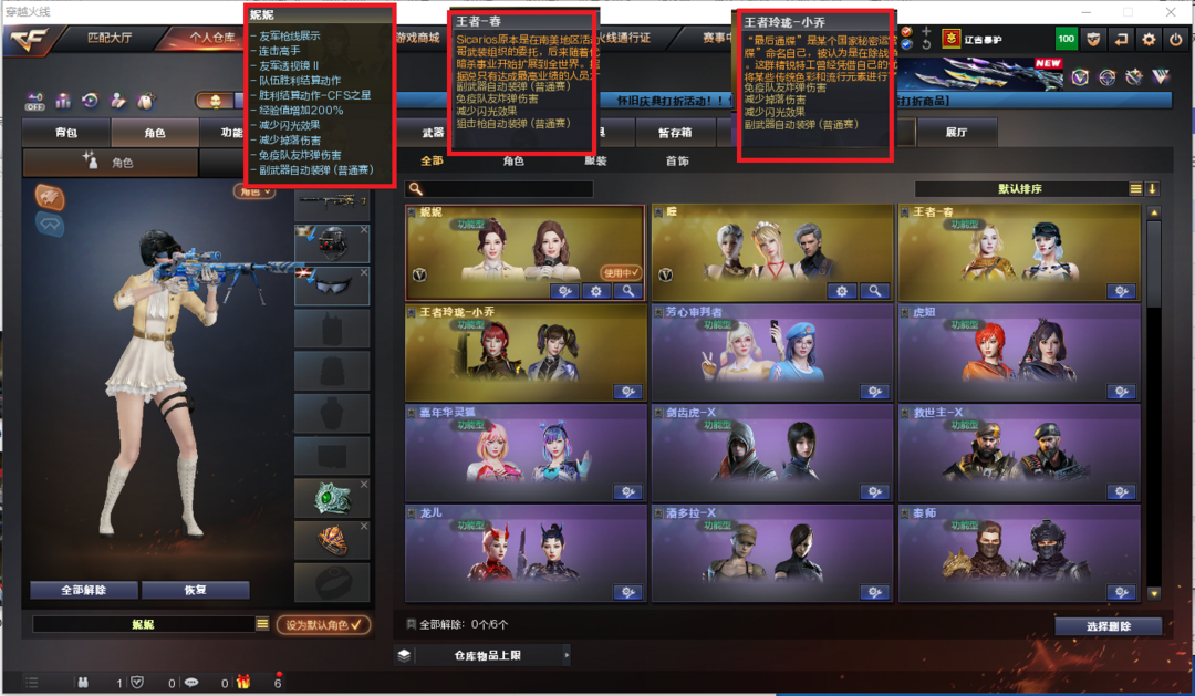 装备描述:排位:可以----------------爆破四防:幻神3皮+音效(KZ冠军、EP荣耀、黄忠皮肤)、冠军之特、COP极地霜雄、、、、、加利尔ACE-天袭、白虎、QBZ金色蔷薇、、、幻神音效、裁决音效、白虎音效、毁灭音效、黑骑士音效、、、1套堕天神、2套神工天巧、1套量子之心、 、、爆破四防(妮妮、王者春、王者小乔)