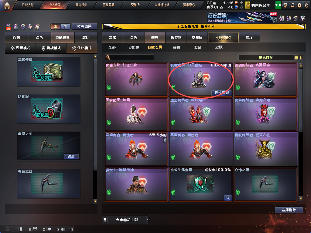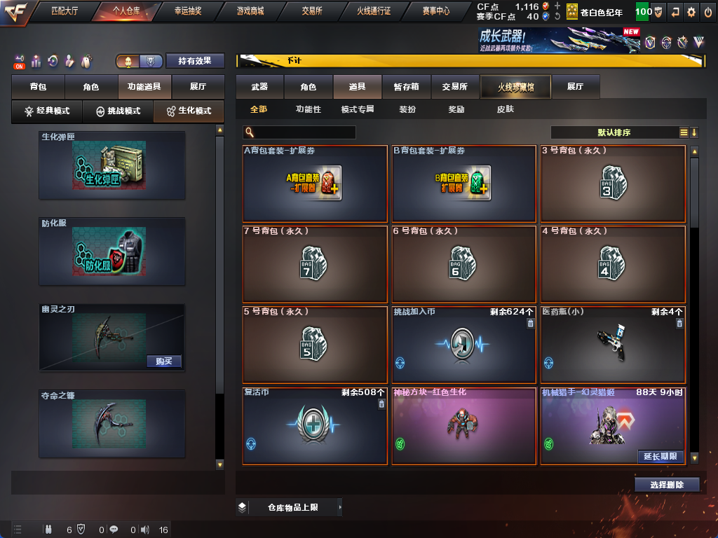 生化炽芒蝶刃♉斯泰尔蝴蝶小人救世主毒蜂双面神♉四防生化背包♉12个生化皮肤♉不退包满榴弹♉伪6盘6烈