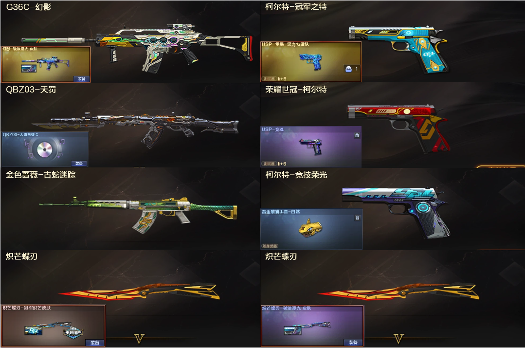8传说幽瞳夜影序列4防影煞♉幻神9皮欧欧音效+星神QBZ白虎三件套♉幻影裁决+3柯尔特炽芒蝶刃鲨臂