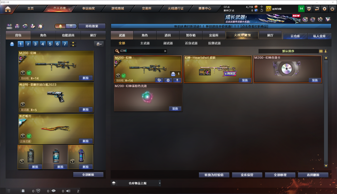限制: 租号3次及以上 |装备描述:王者武器:雷霆王者之锋-觉醒版;炫金超新星;王者雷影;高爆手雷-雷霆王者;QBZ-03-王者蔷薇-觉醒版 英雄武器:机械迷城-穹宇;沙鹰-天神;AK12-天启;AWM-裁决;柯尔特-荣耀世冠白鲨2023;M200-幻神;屠龙;Kar98K-星神;Scar Light-白虎;斩神刀-雷暴;闪光弹-雷霆;麒麟刺;高爆手雷-竞技荣光;擎天-竞技荣光;闪光弹-竞技荣光;烟雾弹-竞技荣光;炽芒蝶刃;Barrett-毁灭;QBZ03-金色蔷薇;M4A1-雷神;擎天;M4A1-黑骑士 角色:电竞教官-云悠悠;关小雨;隼;猎狐者;飞虎队;潘多拉;夜玫瑰;灵狐者-黄金海岸;救世主-X;妲己;夜玫瑰-X;潘多拉-甜心教官;雪莉杨-摸金校尉;潘多拉-锋芒精英;风暴女;嘉年华灵狐;电竞少女;夜玫瑰-宠粉 道具:生化弹匣;闪光护目镜;变异宝贝;幽灵之刃;步枪弹匣;烟雾保护头盔;元界战术腿袋;弦波科技无线电;泉枢动力水壶;绿色巨人;疯狂宝贝;防化服;C4工具钳;手雷包;防弹衣;防弹头盔;云山科技背包;智眸战术目镜;听风战术耳机;防化服;C4工具钳;手雷包;防弹衣;防弹头盔;灵魂忍者;迷雾幽灵;疯狂宝贝;金蛇戒;M