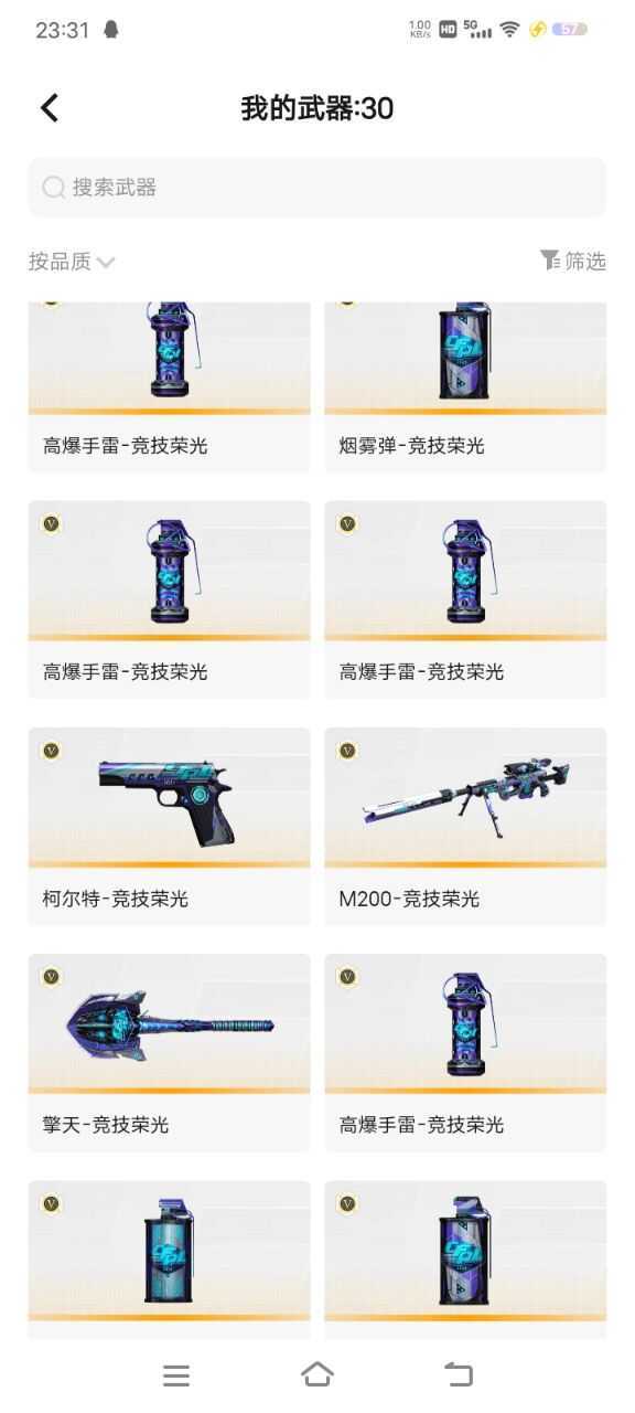 全套竞技荣光,幻神毁灭雷神白虎超新星,角色电竞云悠悠和葵,手雷包荣光4套,6背包。主打爆破,传奇1