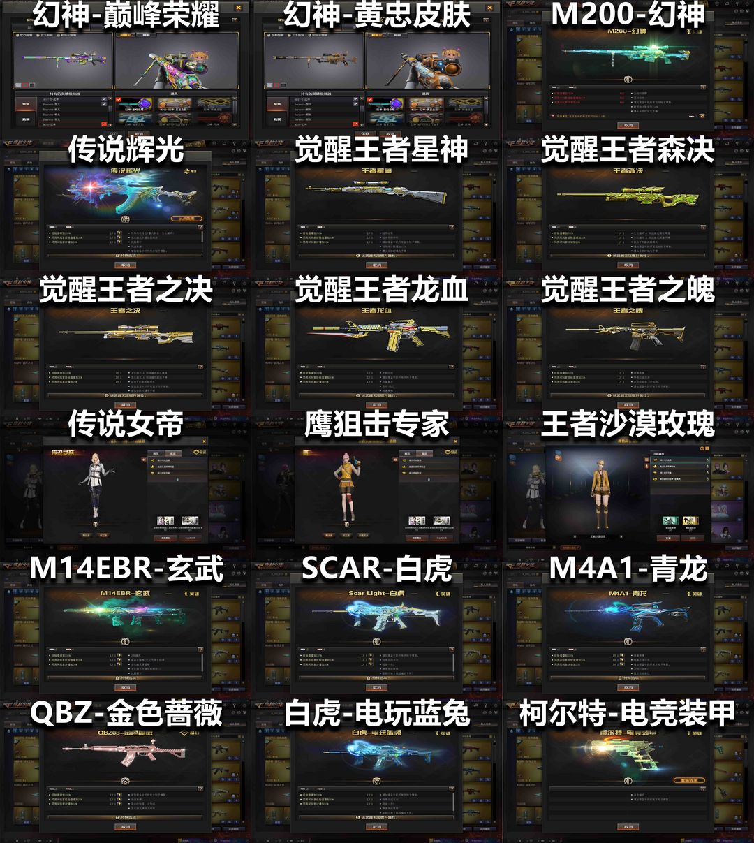 限制: 租号5次及以上 | 撤单率<50%才可租用此帐号装备描述:【装备道具】:QBZ-冠军之薇★柯尔特-冠军之特★Knife-冠军之刃★火麒麟-冠军之心★雷神-冠军之魄★毁灭-冠军之怒★黑骑士-冠军之势★黑龙-冠军之武★龙啸-冠军之啸★九冠军套★传说女帝★幻神-巅峰荣耀皮肤★幻神-黄忠皮肤★M200-幻神★传说辉光★觉醒王者星神★觉醒王者森决★觉醒王者之决★觉醒王者龙血觉醒王者之魄★鹰狙击专家★王者沙漠玫瑰★王者貂蝉樱★火麒麟-白虎★火麒麟-盘古★雷神-荣耀之魄★M4A1-战神赵云★雷神-脉冲核心★黑骑士-战神马超★黑骑士-电玩青兔★雷神-宇航兔皮肤★毁灭耀金皮肤★毁灭星空皮肤★雷神-星空皮肤★M14EBR-玄武★SCAR-白虎★M4A1-青龙★QBZ-金色蔷薇★白虎-电玩蓝兔★柯尔特-电竞装甲★4音效卡QBZ蔷薇音效卡火麒麟音效卡雷神音效卡黑骑士音效卡★炫金火麒麟炫金天龙武士炫金骑士修罗★6烈龙6盘龙4炼狱★斯泰尔蝴蝶★金色蔷薇空★CAT刀锋猫枪★牛牛AK47★COP旗袍★金刚伞★猫猫手套★狐影★灵动武士★★爆破生化挑战全装★生化弹夹防化服变异宝贝死亡之眼★佣兵觉醒手斧镜减速雷★捕食者之眼死亡之眼超级对讲机不退包★超级背包无需换弹查看血量★