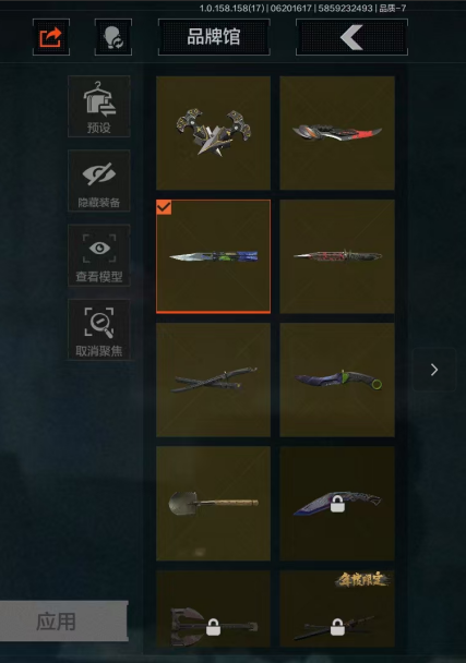 装备描述:角色皮肤:深潜行者II,正义战士特摄戏服,钢铁壁垒作战服,机车朋克战衣,林中人特遣作战服,近战武器:寒牙手刺,贝利亚黄昏,涂鸦利刃,胜利军刀,明刀绣春,急袭弯刀,工兵铲,手套:守护光芒手套,枪皮:午夜梦魇FAL,巅峰M4A1,德尔塔小队M4A1,突围FAL,自喷网格H416,北国内卫MDR,逆火MDR,涂鸦AK102,山地伪装AK74N,深潜F2000,涂绘猎人AR57,骑士之剑ACE31,白垩游魂ACE31,胜利锋刃AEK,壁垒AN94,深潜T03,林地数码T03,历战FAL,秋宴FAL,龙影AKS74U,自喷网络AUG,盛冬AN94,沙漠数码T03,午夜梦魇M110,光粒子M110,全地形数码M110,焰色反应M110,钢铁数码VSS,飞鲨VSS,海洋数码MK14,山地伪装MK14,胜利锋刃S12K,水陆迷彩S12K,营房暖冬USAS12,雪地数码USAS12,雪原凌锋DP-12,桔色USAS12,真实之眼SPR310