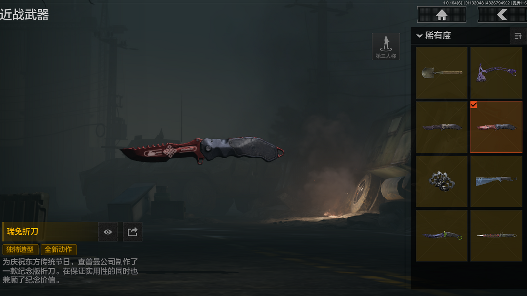 1.6W氪金8刀5皮3金枪1手套 瑞兔折刀 胜利军刀 急袭弯刀 霜狼生存刀,龙魂双节棍,精英虎指,