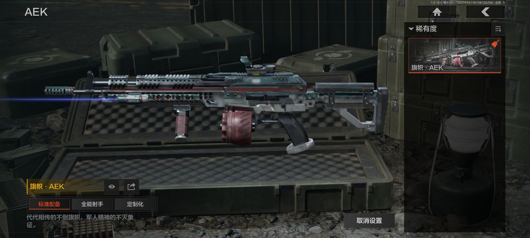 装备描述:30级,历史最高段位:暗区传说【近战武器】:瑞兔折刀,胜利军刀,龙魂双节棍,冬日冰镐,野战折刀,明刀绣春,工兵铲,来战开山刀;【角色皮肤】:龙魂武术服,战术甲胄,金狮护身转运套装,王国卫队礼装,王国卫队礼装轻装,万众狂欢套装,台风IV竞技运动服;【手套】:冬日手套,战术甲胄防护手套;【突击步枪】:包络战术AKM,骑士之剑AKM,逆火玄石AKM,棱光裂变AKM,火力倾泻AKM,历战AKM,来战AKM,潜渊蛇鳞M4A1,德尔塔小队M4A1,午夜梦魇FAL,突围FAL,秋宴FAL,真实之眼FAL,历战FAL,自喷网格H416,逆火MDR,竞技MDR,玄墨披挂MDR,棱光裂变AK102,玄墨披挂AK102,来战AK74N,山地伪装AK74N,棱光裂变AK74N,白狼连队AK74N,莫克斯AKS74U,坚守AKS74U,龙影AKS74U,火绒草AUG,自喷网格AUG,炎夏浪花AR57,棱光裂变ACE31,骑士之剑ACE31,旗帜AEK,虎纹Groza,典礼武备Groza,绿松石数码Groza,虎纹FAMAS,绿海猎手SCAR,青瓷涂层SCAR,青瓷涂层T951,绿松石数码T951,黑石纹T951