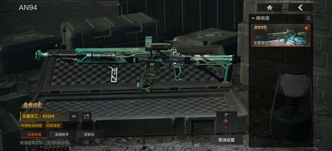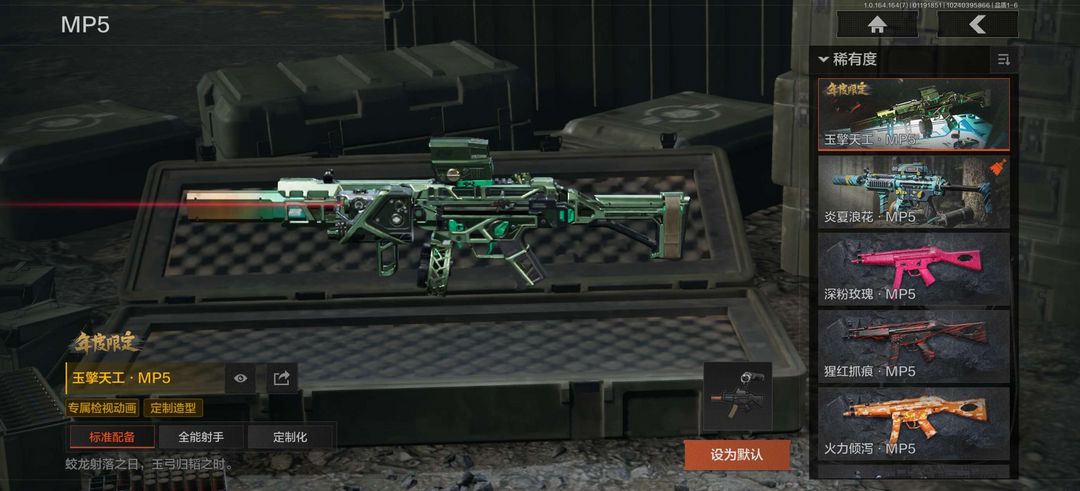 装备描述:使徒欧瑞恩,鎏金街头套装; 告丧夜曲AUG,告丧夜曲AR57,骤羽尖啸M4A1,竞技M4A1,竞技MDR,鱼跃丹青AK102,火力倾泻AUG,赢家F2000,炎夏浪花AR57,狂怒荣耀AEK,骑士之剑ACE31,冬日姜兵SCAR,百锻寒芒T951,利齿风暴T03,百锻寒芒T03,骤羽尖啸AK12;利齿风暴MPX,炎夏浪花MP5,骤羽尖啸MPX,高塔之内P90,利齿风暴T79,超越自我Vector9;高塔之内VSS,竞技M110;饰金AX50,超越自我AR30,骑士之剑SJ16;狂怒荣耀RPK16;赢家G18C