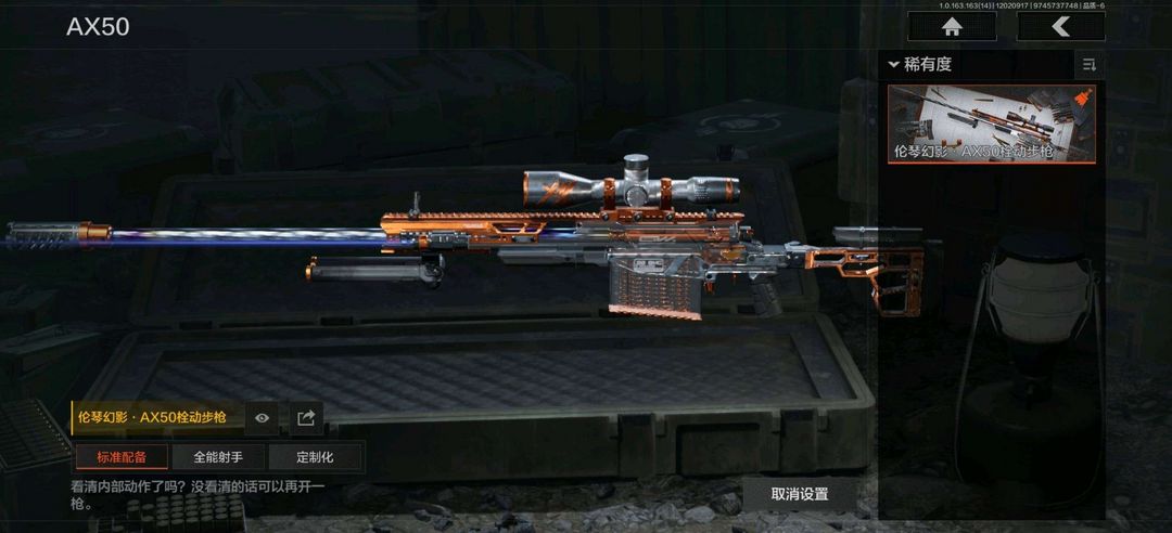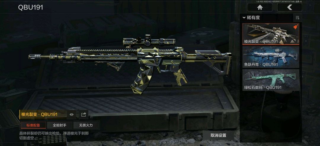 装备描述:使徒欧瑞恩,鎏金街头套装,都市夜影套装; 竞技FAL,包络战术AKM,告丧夜曲AR57,战术大师AEK,旗帜AEK,战术大师AN94,旧王圣谕QBZ191,缟兵玄墨AKM,历战AKM,自喷网格H416,德尔塔小队H416,竞技MDR,正在骇入MDR,涂鸦AK102,战术大师AK74N,棱光裂变AK74N,来战AK74N,山地伪装AK74N,火力倾泻AUG,钢铁真理F2000,炎夏浪花AR57,涂绘猎人AR57,粉绒臻选AN94,武侍FAMAS,巡林客T951,伦琴计量T951,利齿风暴T03,林地数码T03,骤羽尖啸AK12,07式林地迷彩QBZ191,利齿风暴MPX,湖冰倒影MP5,骤羽尖啸MPX,涂鸦MPX,利齿风暴T79,伦琴计量Vector45,战术大师Suomi; 旧王圣谕VSS,棱光裂变QBU191,战术大师SVDS,典礼武备MK14,竞技M110,缟兵玄墨M110,鱼跃丹青QBU191; 伦琴幻影AX50栓动步枪,棱光裂变莫辛,白色丧钟莫辛,粉绒臻选AR30,战术大师SJ16,武侍SJ16战术大师SKS;涂鸦G18