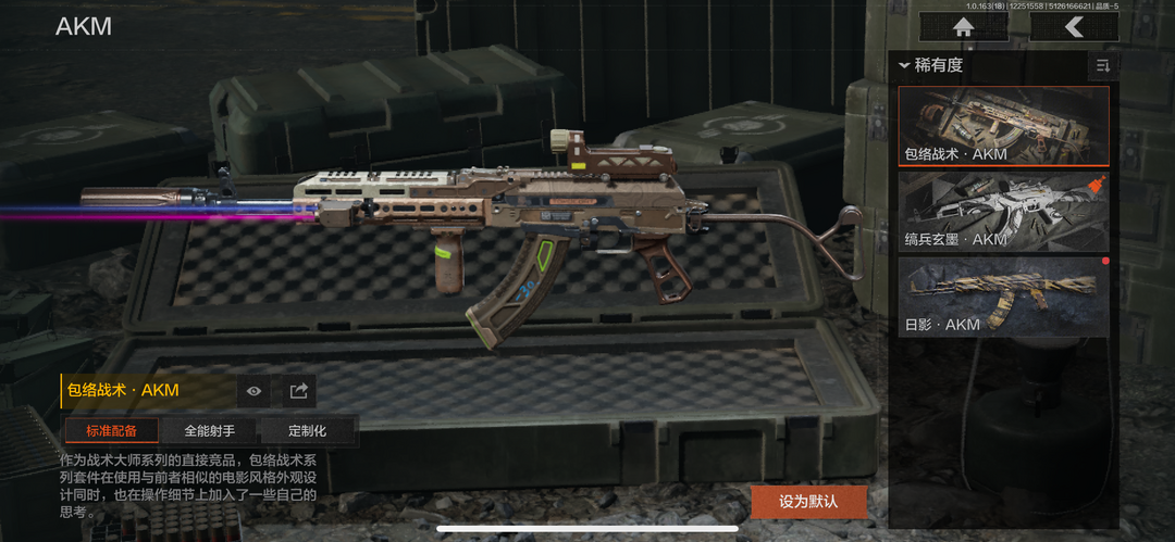 装备描述:30级,历史最高段位:暗区传说【角色皮肤】:王国卫队礼装、森林守望特种服,街区守卫,王国卫队礼装轻装;【近战武器】:明刀绣春、霜狼生产刀、工兵铲、突击匕首【突击步枪】:包络战术AKM,缟兵玄墨AKM,日影AKM,黑金国际M4A1,潜渊蛇鳞M4A1,骤羽尖啸M4A1,林中人FAL,突围FAL,蓝色咆哮H416,竞技MDR,鱼跃丹青DTMDR,鱼跃丹青AK102,洞窟遗迹AK102,玄墨披挂AK102,火绒AKS74U,战术大师AUG,深潜F2000,电动工具AR57,告丧夜曲AR57,逆火玄石AEK,虎纹Groza,虎纹FAMAS,青瓷涂层SCAR,黑石纹T951,巡林客T951,青瓷涂层T951,虎纹T03,森林迷彩T03,沙海AK12,典礼武备MCX,沙海MCX,绿海猎手AR15;【冲锋枪】:掌中盾MP5,龙威MP5,灰鼠幻歌P90,沙海UZI,洞窟遗迹UZI,苏梅克UMP45,洞窟遗迹UMP45,玄墨披挂MAC10,殷红渐变MAC10,黑石纹M3A1,神锋Vector45,鱼跃丹青T85,都市黄Vector9,龙影Suomi,战术大师Suomi,沙海MP5K;【射手步枪】:战术大师