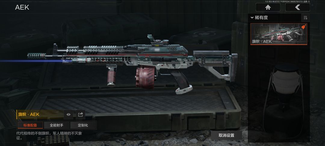 装备描述:30级,历史最高段位:暗区传说【近战武器】:苍穹利爪,赢家匕首,热能武器补牢,突击匕首,工兵铲;【角色皮肤】:冥王,使徒瑞文,王国卫队礼装,王国卫队礼装轻装,公司成员套装,鎏金街头套装,都市夜影套装,街区守卫;【突击步枪】:包络战术AKM,棱光裂变AKM,火力倾泻AKM,猩红抓痕AKM,幻域莎绫M4A1,黑金国际M4A1,伦琴幻影FAL,和平之手FAL,秋宴FAL,蓝色咆哮H416,竞技MDR,利齿风暴MDR,棱光裂变AK102,洞窟遗迹AK102,加速地带AK102,来战AK74N,山地伪装AK74N,骑士之剑AKS74U,火绒AKS74U,火力倾泻AUG,赢家F2000,醒目提示F2000,炎夏浪花AR57,涂绘猎人AR57,电动工具AR57,棱光裂变ACE31,旗帜AEK,粉绒臻选AN94,盛冬AN94,绿松石数码Groza,典礼武备Groza,武侍FAMAS,虎纹FAMAS,四色花SCARL,伦琴计量SCAR,绿海猎手SCAR,青瓷涂层SCAR,绿松石数码T951,巡林客T951,青瓷涂层T951,深潜T03,虎纹T03,利齿风暴T03,沙漠数码T03,典礼武备MCX,沙海MC
