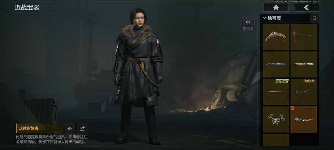 9刀10皮4金皮1橙枪9金枪,苍穹利爪,收割者,S-07折刀,赢家匕首,热能武器补牢,三尺万仞战术剑