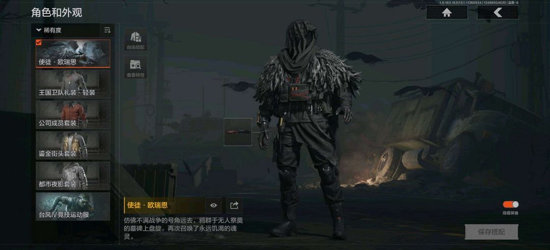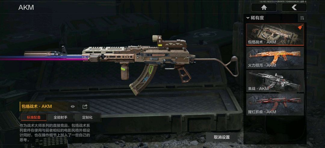 装备描述:使徒欧瑞恩,鎏金街头套装,都市夜影套装,台风IV竞技运动服 竞技FAL,包络战术AKM,告丧夜曲AR57,战术大师AEK,旗帜AEK,战术大师AN94,战术大师QBZ192,来战AKM,潜渊蛇鳞M4A1,幻域莎绫M4A1,竞技MDR,北国内卫MDR,炎夏浪花H416,自喷网格H416,鱼跃丹青AK102,白垩游魂AK102,火力倾泻AUG,战术大师AK74N,来战AK74N,莫克斯AKS74U,骑士之剑AKS74U,逆火玄石F2000,钢铁真理F2000,炎夏浪花AR57,战术大师ACE31,骑士之剑ACE31,粉绒臻选AN94,伦琴计量AN94,北国内卫AN94,阴影AN94,典礼武备Groza,巡林客T951,伦琴计量T951,武侍FAMAS,利齿风暴T03,07式林地迷彩QBZ191;利齿风暴MPX,边缘矢量MPX,骤羽尖啸MPX,高塔之内P90,利齿风暴T79, 骑士之剑VSS,乌金黑曜M110,高塔之内VSS,玄戈梨花VSS,白狼连队VSS,战术大师SVDS,典礼武备MK14, 伦琴幻影AX50栓动步枪,饰金AR30,战术大师SJ16,骑士之剑SJ16