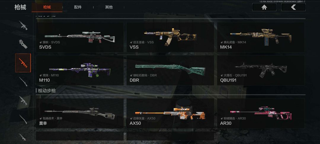 刀皮:收割者,空腔战术,突击匕首皮肤:白蔷薇枪皮:FAL,VSS,QBZ系列等等枪皮