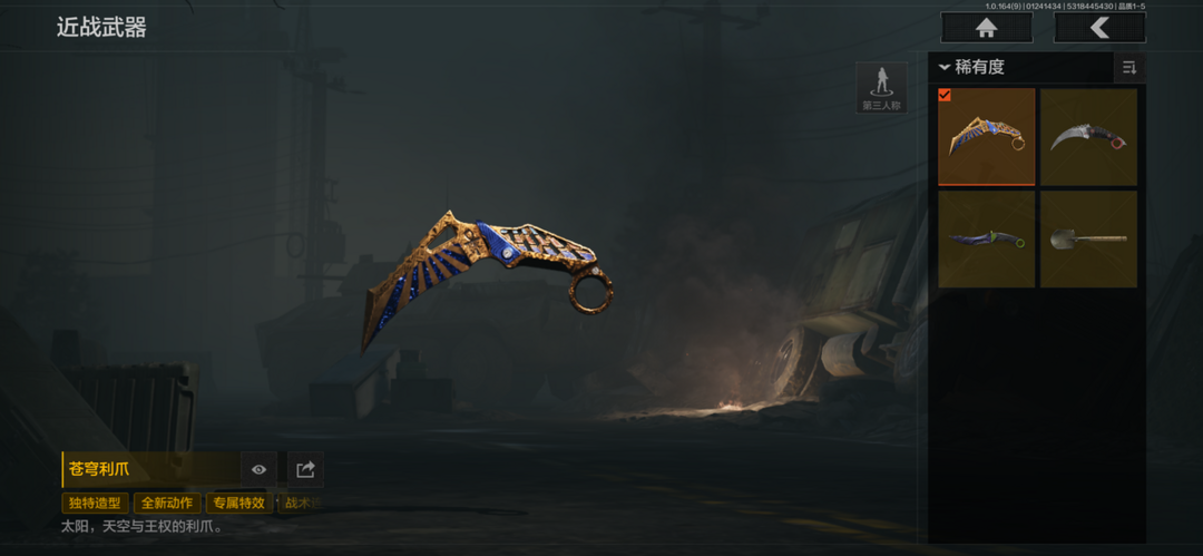 4刀1橙皮5金皮14皮肤1手套8金枪,苍穹利爪,下弦月,芭斯特,白蔷薇斯黛拉,黑卡蒂,冥河,深潜行者