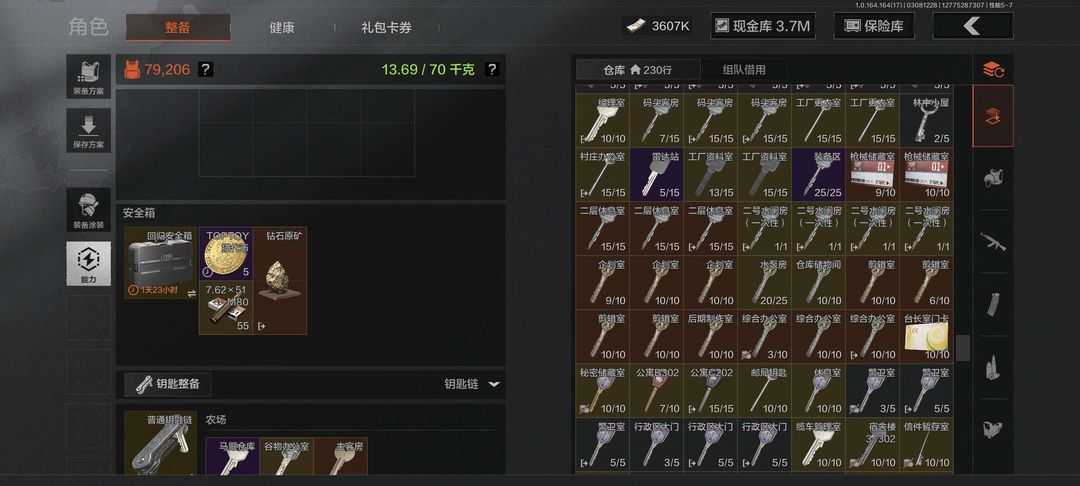 仓库现金有300多万,无氪金刀皮,大部分钥匙都有,有部分热门枪皮,可以打清仓