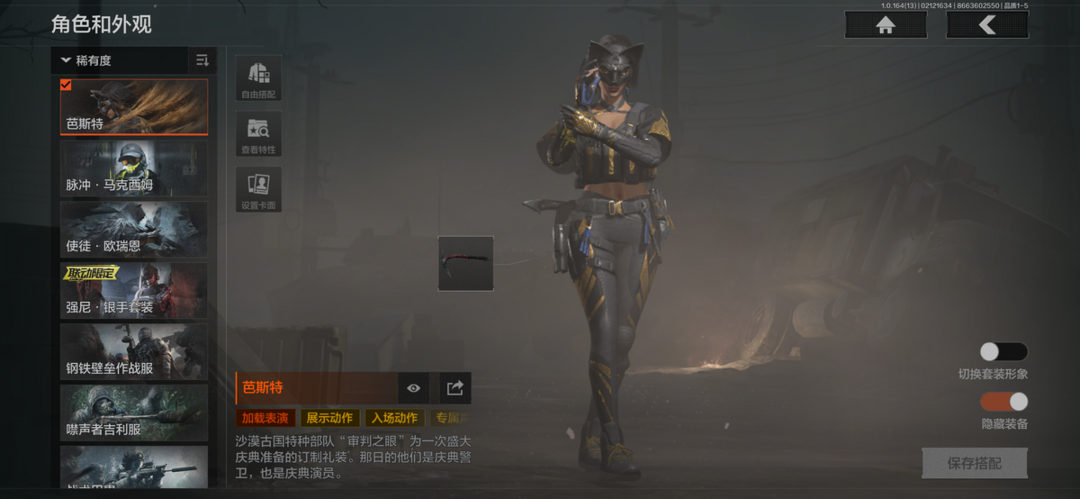 装备描述:历史最高段位:暗区传说【角色皮肤】:芭斯特,脉冲马克西姆,使徒欧瑞恩,强尼银手套装,钢铁壁垒作战服,噤声者吉利服,战术甲胄,机车朋克战衣,城市户外运动套装,粉绒暴击套装,金狮护身转运套装,使徒瑞文,等高线运动套装,王国卫队礼装轻装,公司成员套装,鎏金街头套装,台风III竞技运动服;【近战武器】:赢家匕首,热能武器补牢,瀚星斩铁,盘牙彻甲短刃,涂鸦利刃,冬日冰镐,瑞兔折刀,工兵铲;【手套】:玉鸾挂枝手套,战术甲胄防护手套;【突击步枪】:棱光裂变AKM,火力倾泻AKM,猩红抓痕AKM,历战AKM,缟兵玄墨AKM,逆火玄石AKM,包络战术AKM,骤羽尖啸M4A1,战术大师M4A1,潜渊蛇鳞M4A1,玄墨披挂MDR,调色盘MDR,北国内卫MDR,竞技MDR,利齿风暴MDR,鱼跃丹青MDR,洞窟遗迹AK102,加速地带AK102,玄墨披挂AK102,棱光裂变AK102,白狼连队AK74N,战术大师AK74N,棱光裂变AK74N,火绒AKS74U,龙影AKS74U,莫克斯AKS74U,战术大师AUG,竞技AUG,火力倾泻AUG,告丧夜曲AUG,冰河碎影AUG,醒目提示F2000,钢铁真理F2000