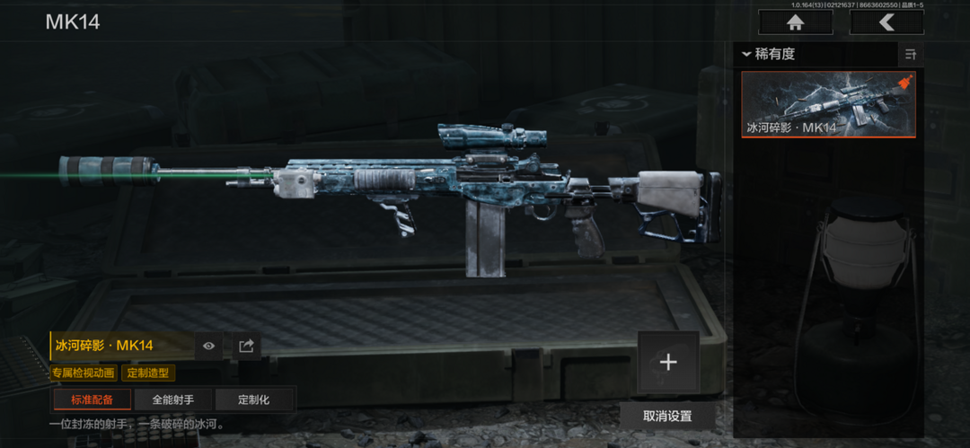 1橙衣7金衣18皮肤8刀2手套13金枪,冰河碎影MK14,芭斯特,瑞兔折刀,赢家匕首,热能武器补牢,