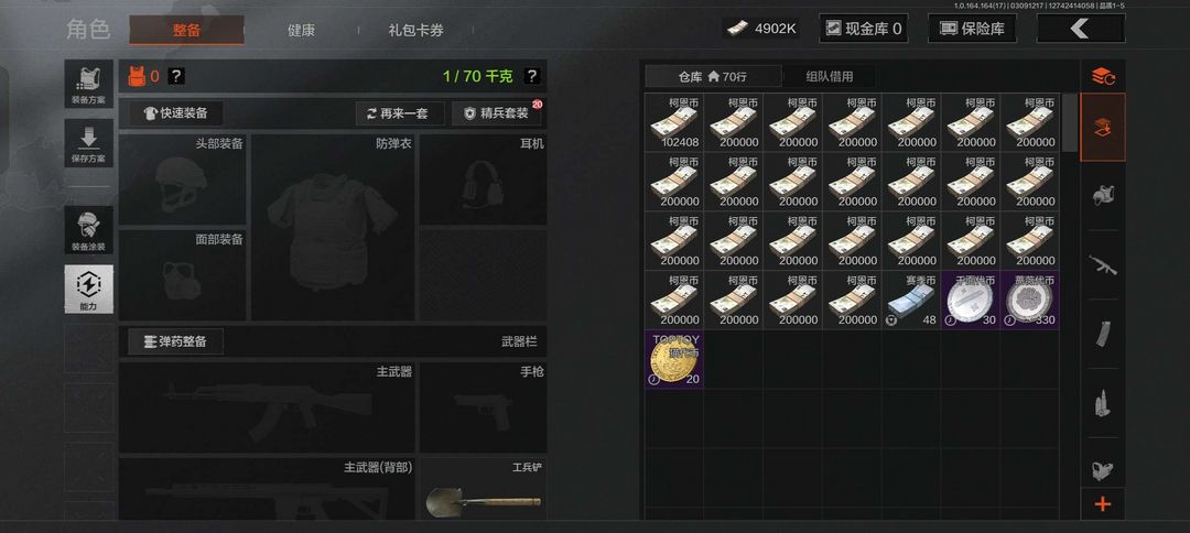 暗区突围4.9M,4902万存币操作。禁止利用账号进行开挂四格保险可用。