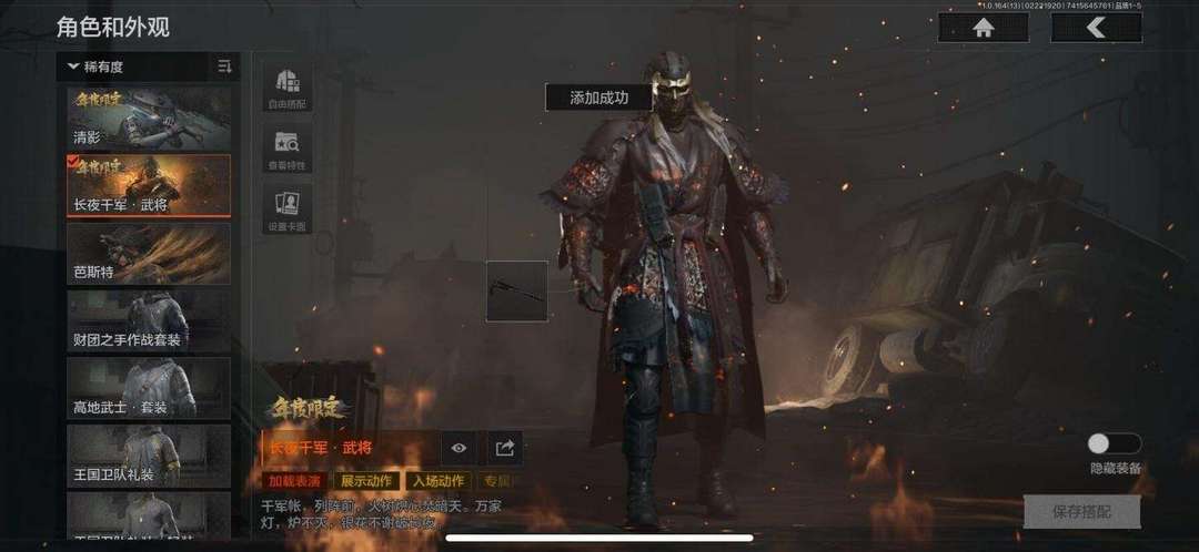 装备描述:裁决手杖剑,冬日冰镐角色皮肤:长夜千军武将,芭斯特,清影手套:仓库价值:50M科恩币:35465k