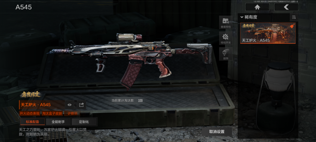 装备描述:30级,历史最高段位:暗区传说【角色皮肤】:长夜千军武将,太玄,骑士典范艾尔熙德,套金客莫雷尔,弗雷德,白蔷薇斯黛拉,冥河,脉冲马克西姆,火绒塔莉娅,深潜行者II,林中人特遣作战服,长夜千军十夫长作战套装,和平先锋作战套装,财团之手作战套装,粉绒暴击套装,使徒瑞文,秋日盛宴风衣;【近战武器】:赤火炉心,百炼恒常,空腔战术,明刀绣春,霜狼生存刀,突击匕首,工兵铲;【突击步枪】:冲刺极限QBZ192,天工炉火A545,包络战术AKM,竞技风潮M4A1,骑士之剑M4A1,地脉深处FAL,伦琴幻影FAL,林中人FAL,镀火熔金H416,战术大师AK102,告丧夜曲AUG,赤帽要塞AR57,地脉深处ACE31,百锻铁骑AEK,战术大师AEK,玉擎天工AN94,战术大师AN94,旧王圣谕QBZ191,乌金黑曜QBZ192,和平先锋AKM,赤啸乘黄AKM,骑士之剑AKM,逆火玄石AKM,秋宴AKM,潜渊蛇鳞M4A1,猎手骸骨M4A1,竞技MDR,鱼跃丹青DTMDR,利齿风暴MDR,鱼跃丹青AK102,包络战术AK74N,战术大师AK74N,伦琴计量AK74N,熔星AKS74U,外设AUG,猎手骸骨F