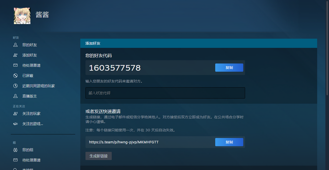 装备描述:1.【租客操作-因平台原因不一定成功】开加速器加好友,好友码见图。 2.【让好友操作】快捷加好友,好友链接:https://s.team/p/hwng-pjvp/MKMHFGTT,让好友打开链接登录他的账号即可添加成功。