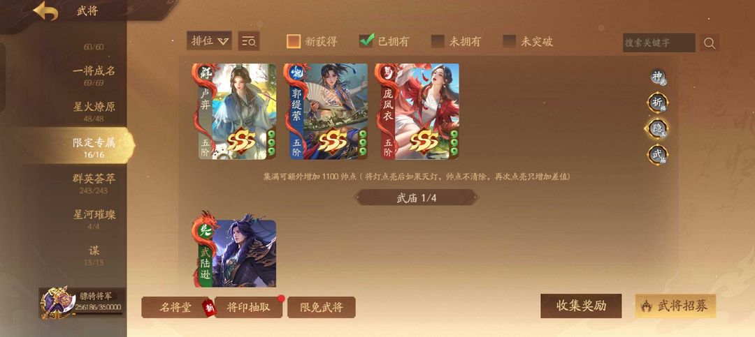 极品女将动皮骠骑❤️5威❤️6神武神孙权❤️10乐❤️4谋❤️郭缇萦谋邓艾桓阶钟毓崔令仪夏侯徽