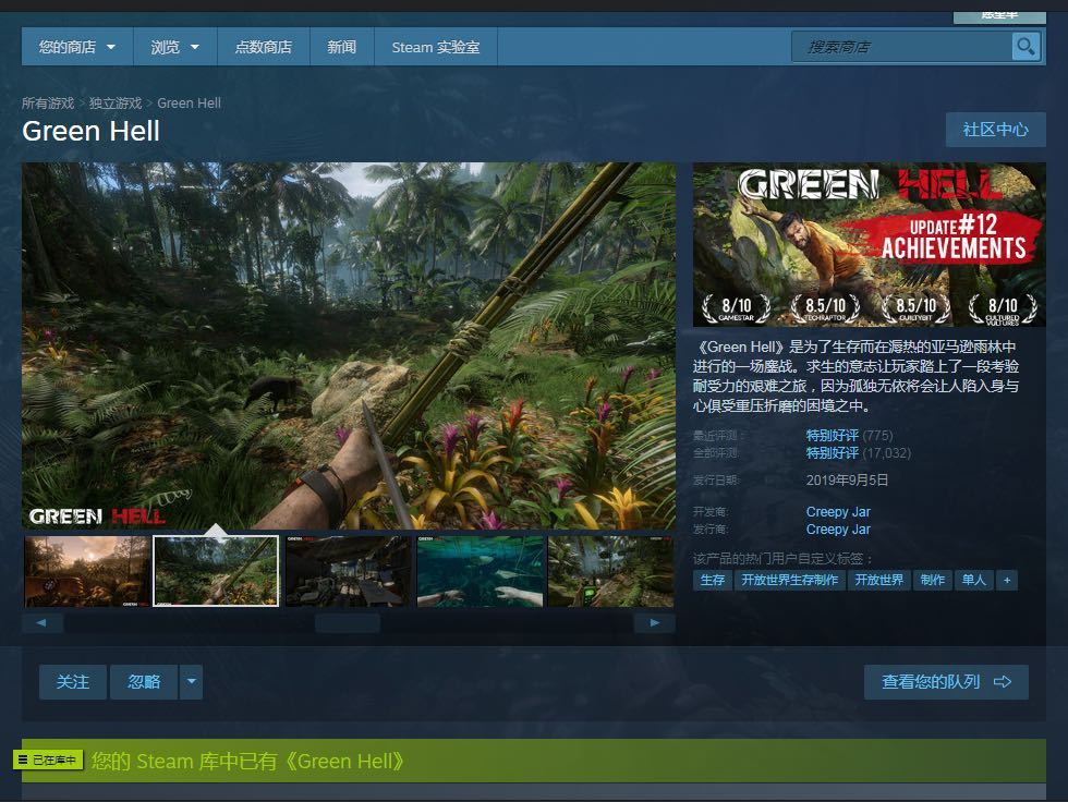 《绿色地狱(Green Hell)》终极版!全DLC!可联机!全新账号!开放世界生存制作