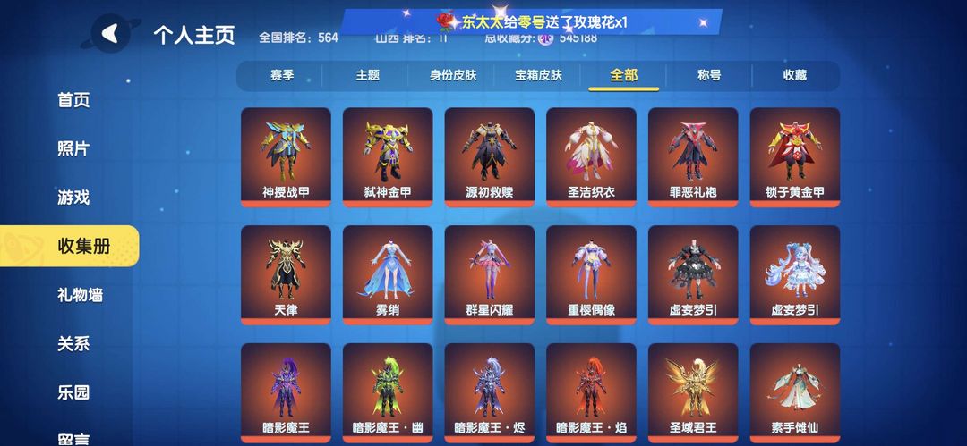 v10有13套神话一个飞龙和星舰坐骑一个奶龙座椅还有超多皮肤欢迎体验