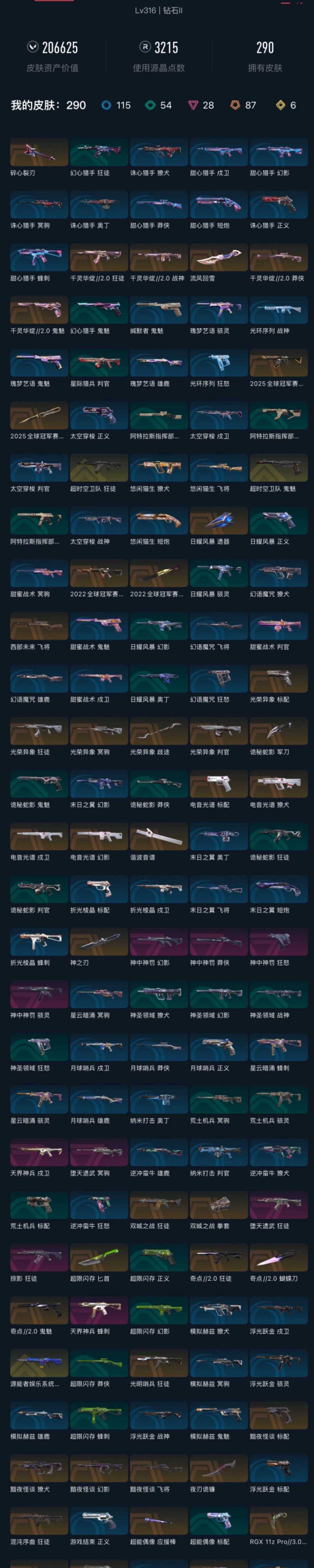 武器皮肤数量:290