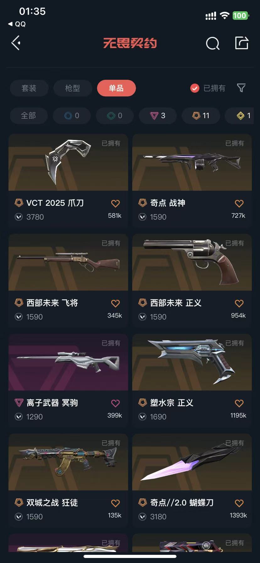 可排❤VCT25爪刀❤边陲正义鸟狙❤混沌双城ak奇点2.0蝴蝶刀❤全息日冕狂徒剥皮小刀❤离子大狙电玩