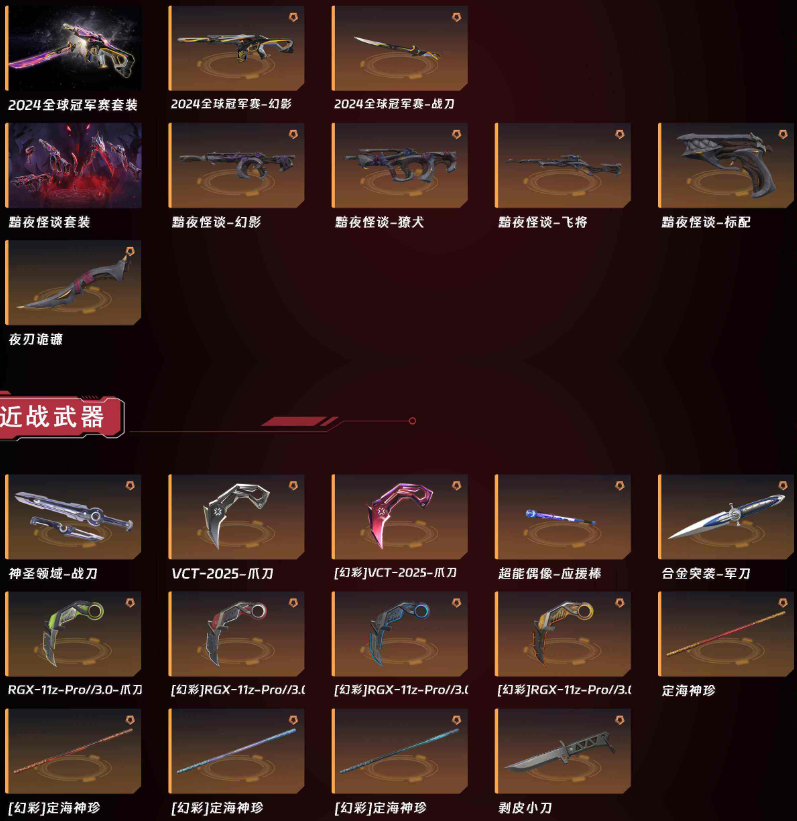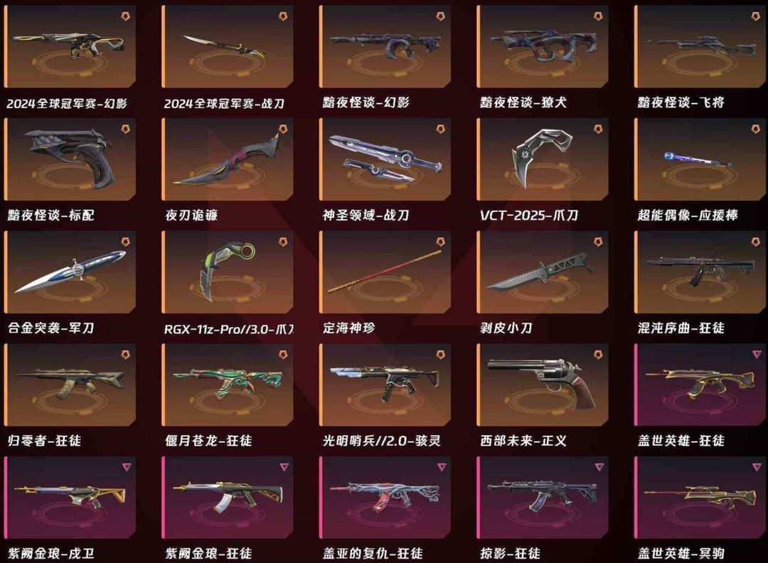 可排位大库存☆VCT爪刀☆24全球套☆RGX☆混沌序曲☆掠影☆盖亚☆紫金☆剥皮小刀☆西部☆各种散件☆