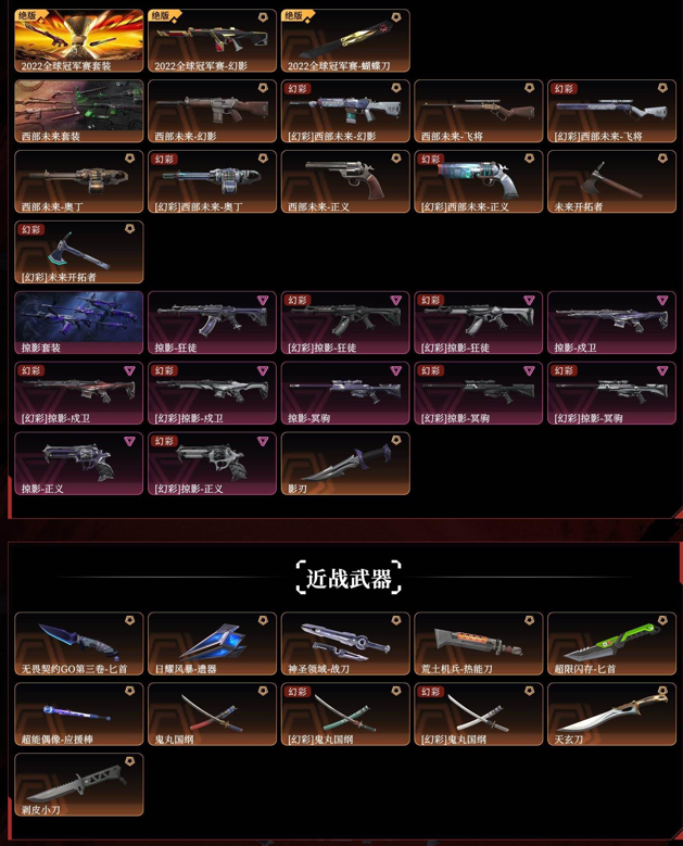 装备描述:25冠军狂徒24冠军幻影22冠军西部未来掠影鬼丸光荣狂徒混沌狂徒离子狂徒盖亚狂徒紫金狂徒异鳞魔蛇幻影塑水宗飞将偃月苍龙冥驹耀鳞威龙鬼魅