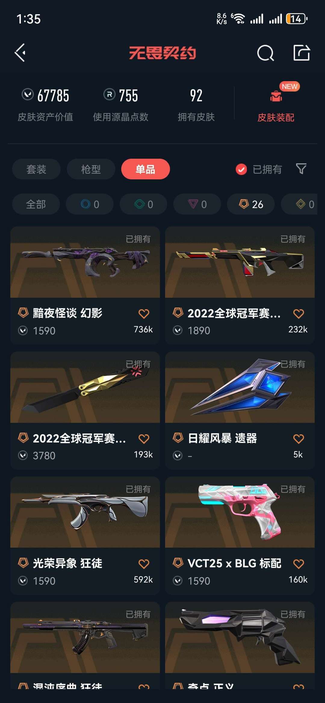 6.7w资产,22冠军23冠军多狂徒幻影皮肤基本上每个常用皮都有炫彩,白苍龙狙