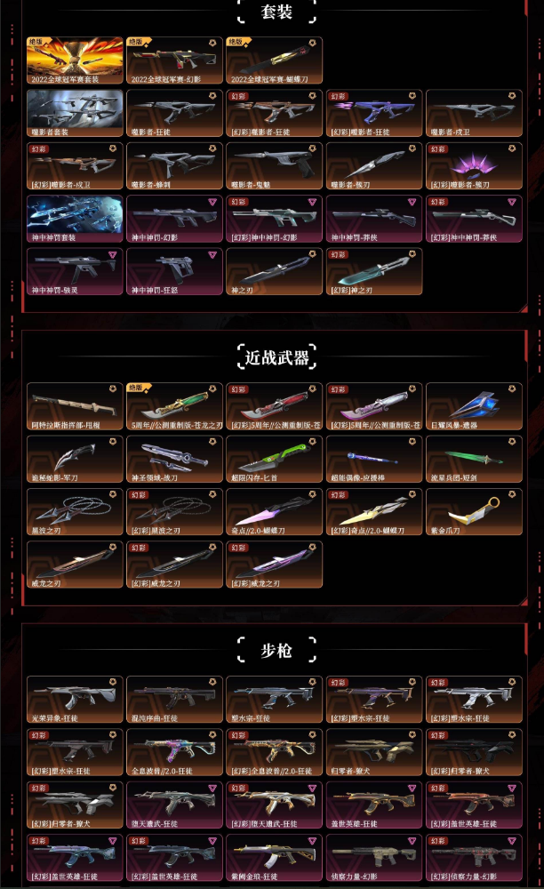 装备描述:苍龙之刃2022冠军噬影者神中神罚超限闪存匕首黑波之刃奇点2.0蝴蝶刀威龙之刃光荣异象狂徒混沌序曲狂徒塑水宗狂徒全息波普2.0狂徒归零者撩犬堕天遗武狂徒盖世英雄狂徒紫阙金琅狂徒侦察力量幻影耀鳞威龙狂徒堕天遗武冥驹天界神兵飞将起源冥驹西部未来奥丁砰砰特攻队奥丁奇点战神千灵华绽判官紫阙金琅2.0雄鹿西部未来正义塑水宗正义天界神兵鬼魅紫阙金琅标配