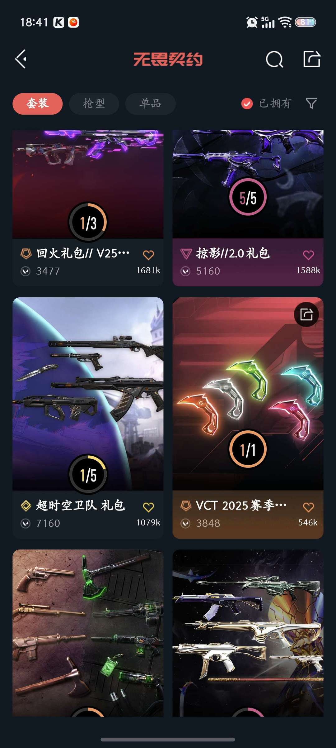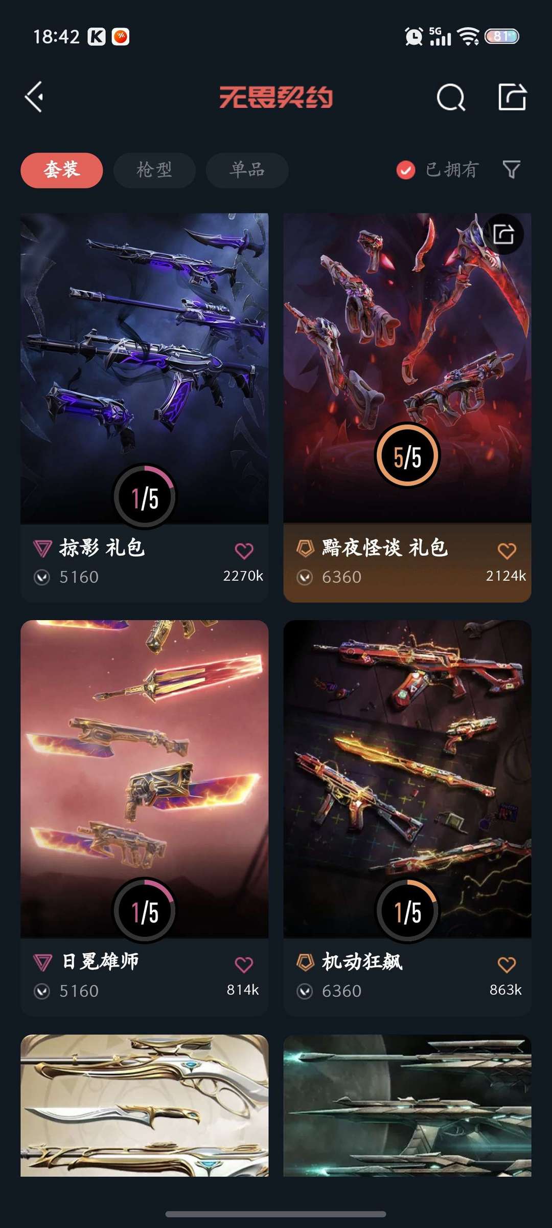 可排位⚡⚡黯夜怪谈一套⚡掠影2.0一套⚡vct爪刀⚡已有特效皮肤全部升满⚡