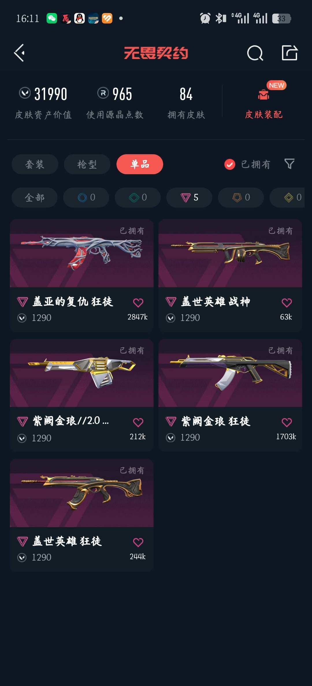 武器皮肤数量:84