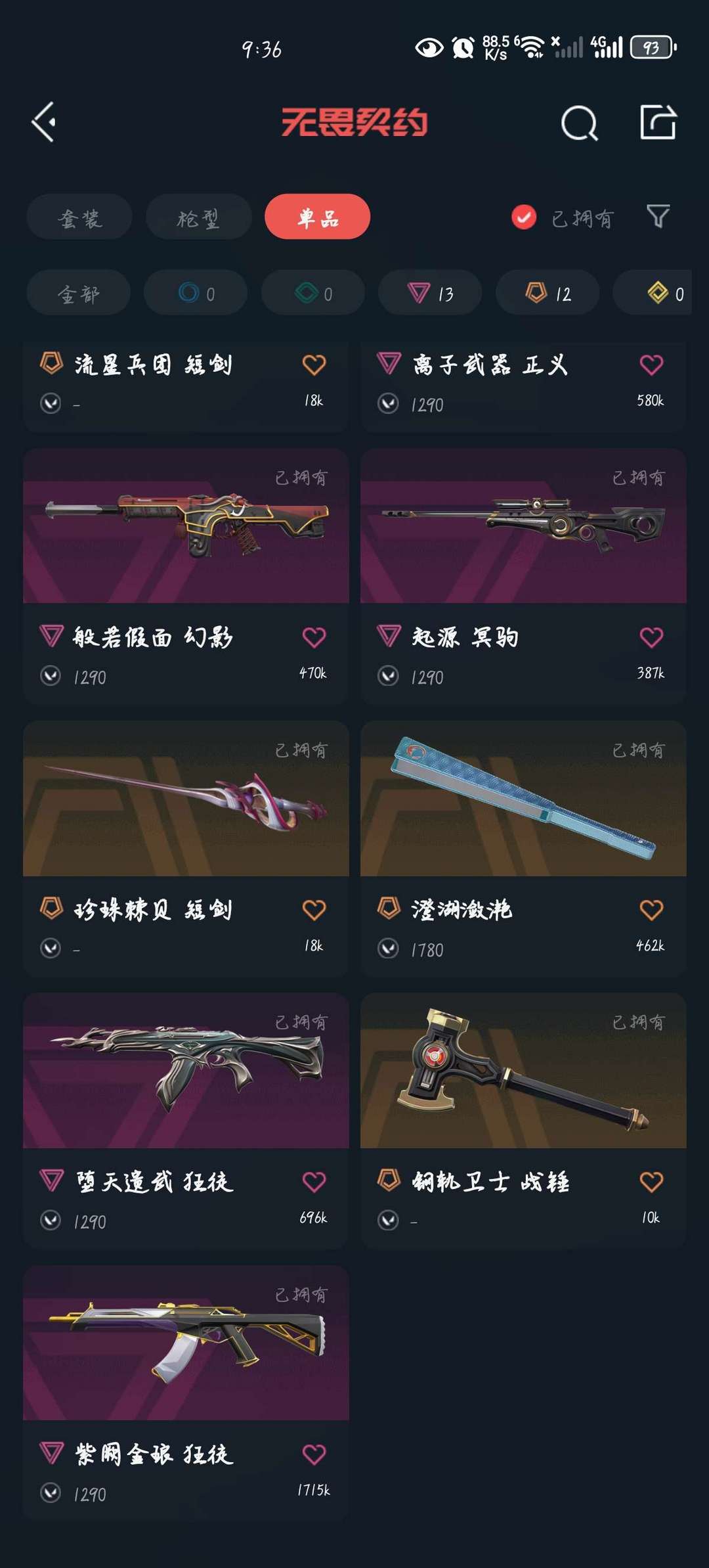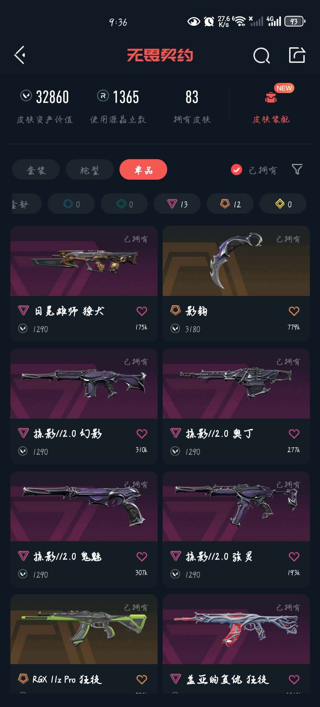 装备描述:全角色,掠影2.0+奇点2.0+显卡盖亚摩托紫金堕天遗武ak+恶鬼幻影+太极扇+影钩+奇点蝴蝶刀+起源冥狙+雄狮獠犬+西部未来飞将+离子正义+奇幻朋克骇灵3万价值