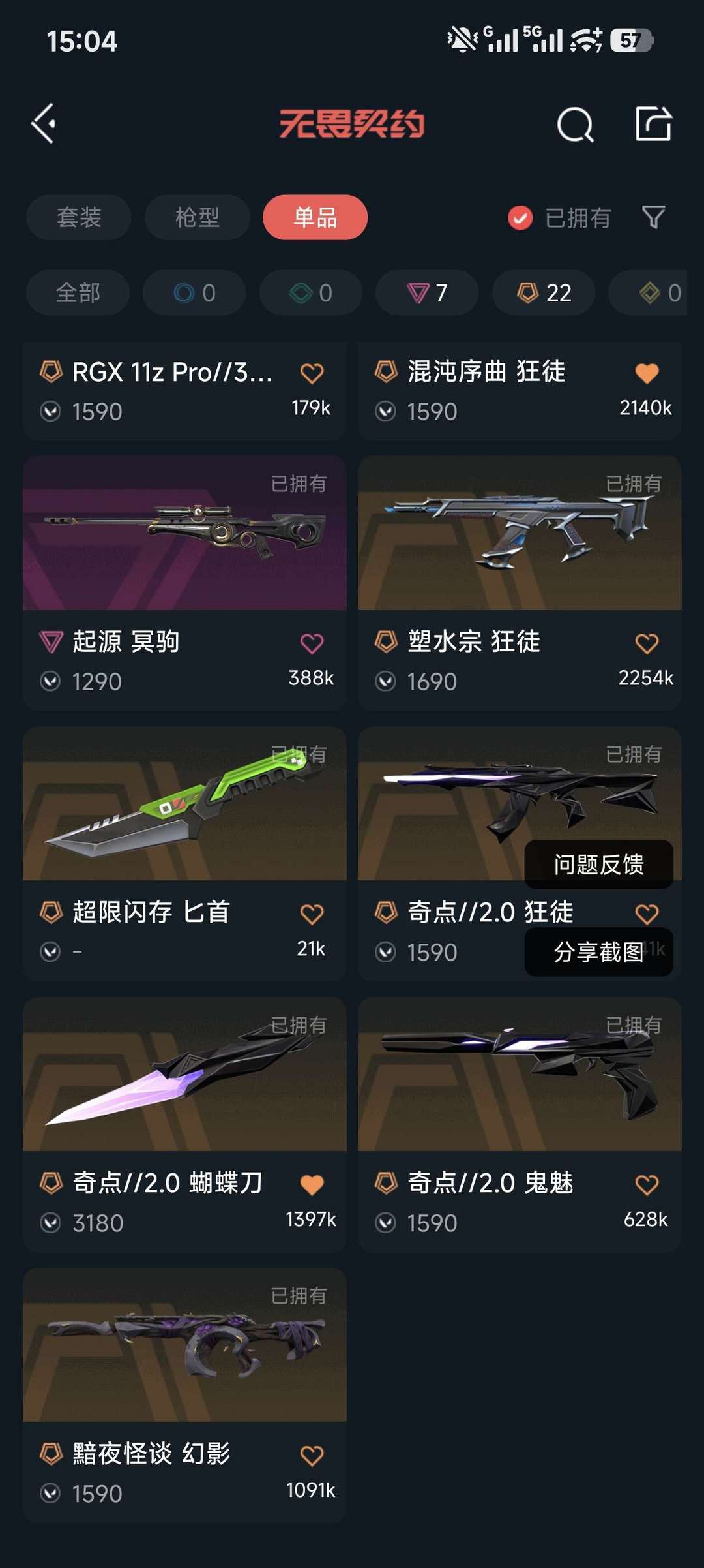 武器皮肤数量:102