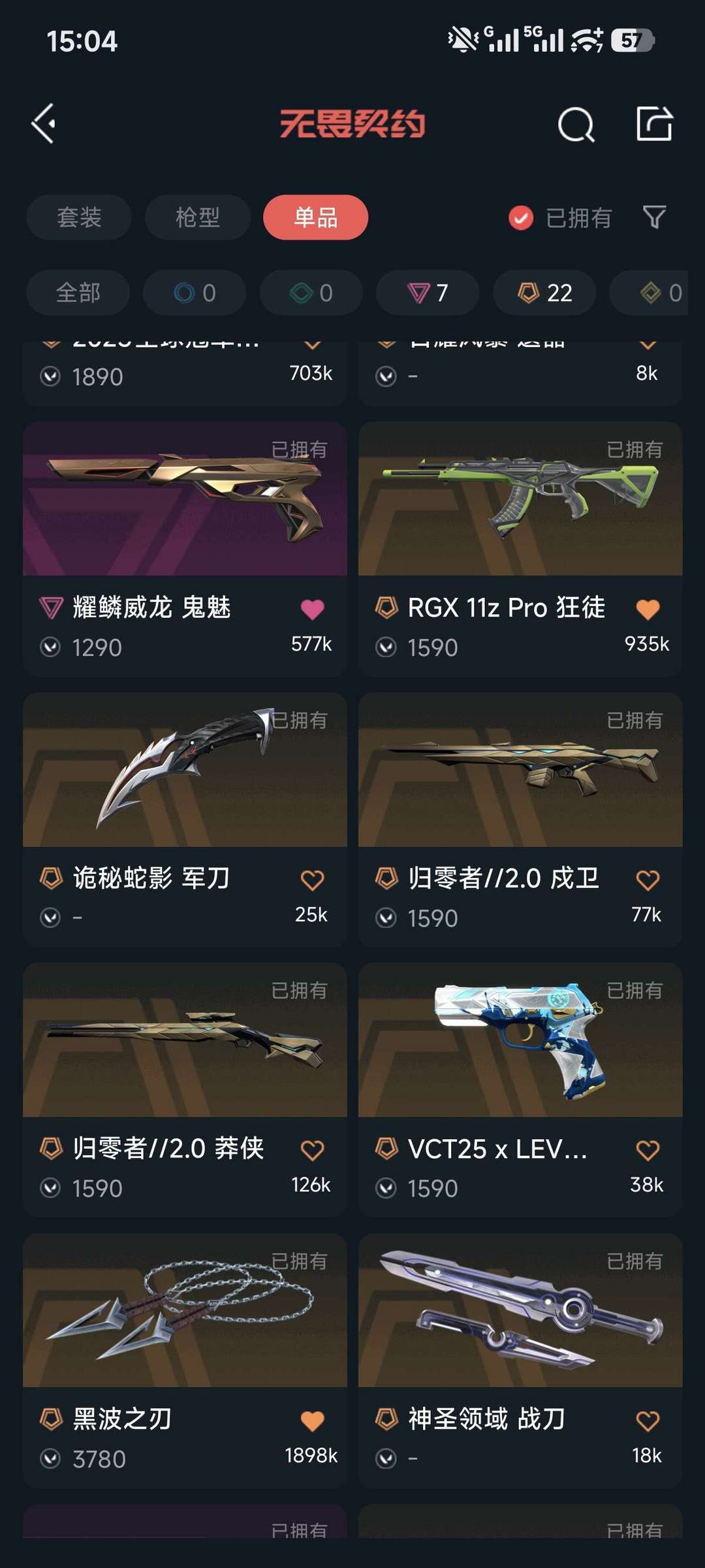 传奇数量:22