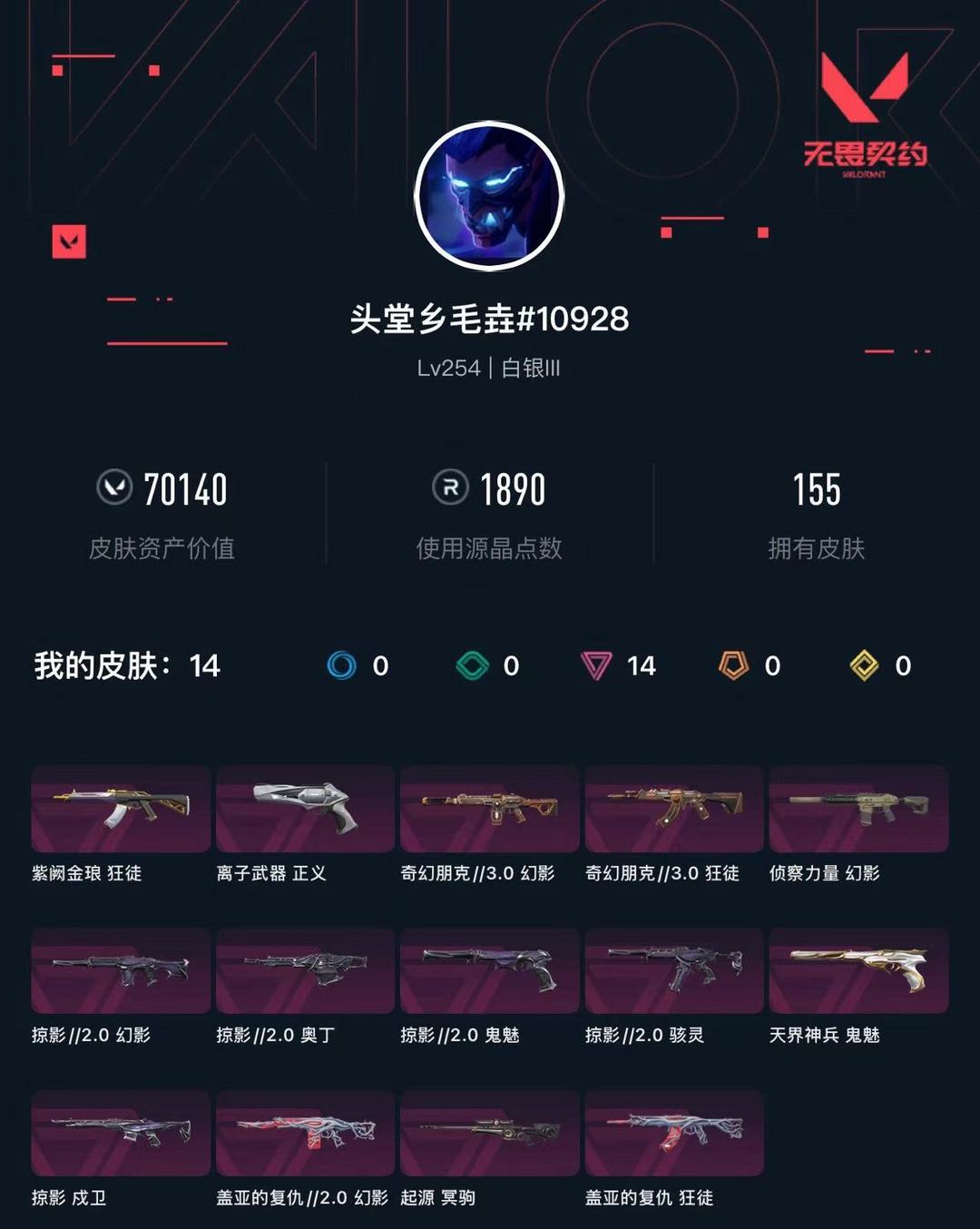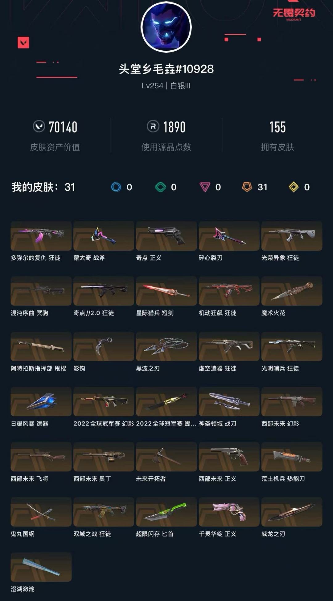 武器皮肤数量:155