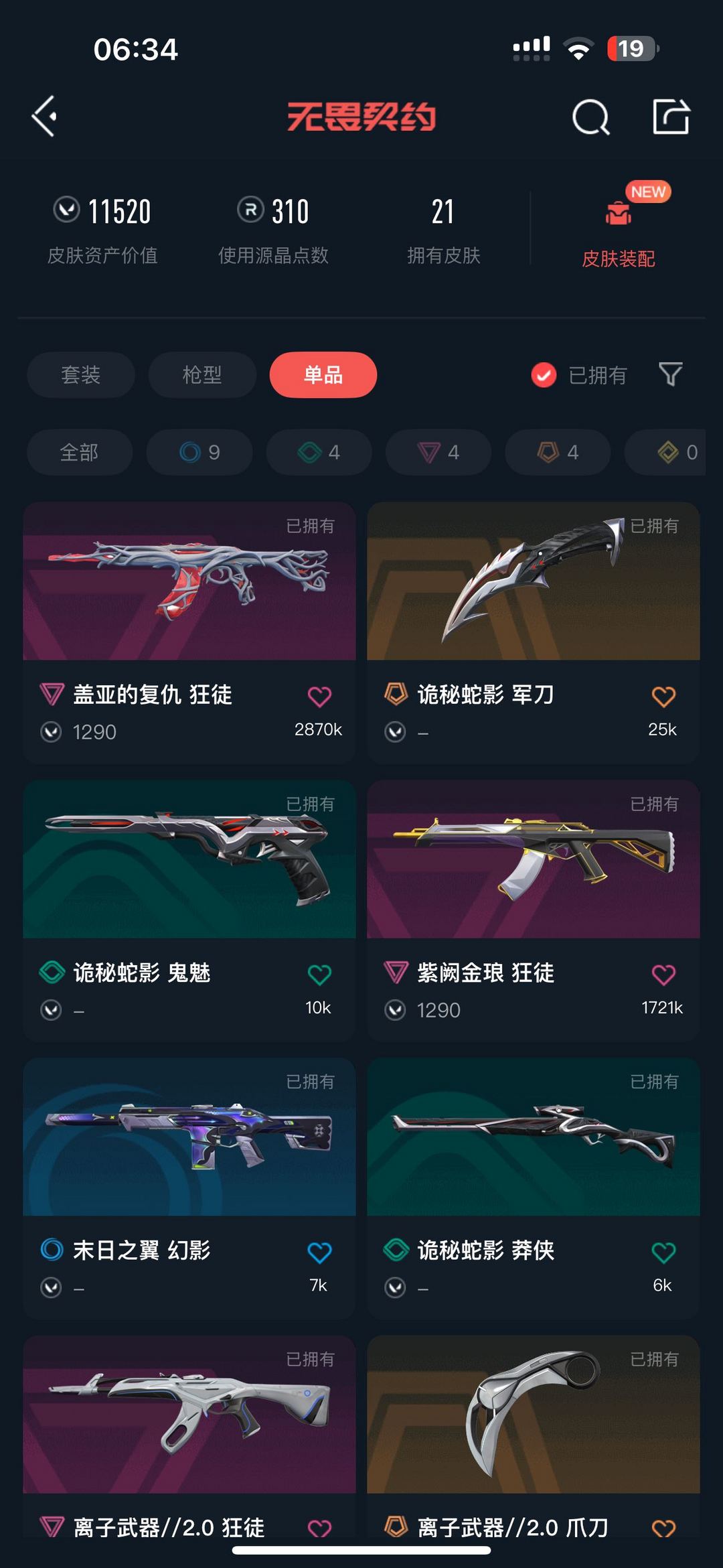 武器皮肤数量:21
