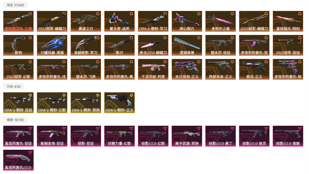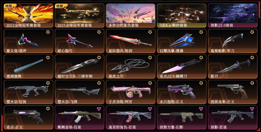可排位⭐三棱刺/22/25冠军套/ORA-x颗秒套/多弥尔的复仇套/黑波之刃/掠夺爪刀/蝴蝶刀