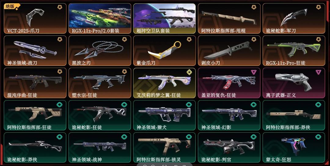 军刺+25爪刀+黑波+紫金爪+剥皮⭐超时空套装+显卡20套⭐AK混沌塑水猫咪盖亚显卡⭐离子正义