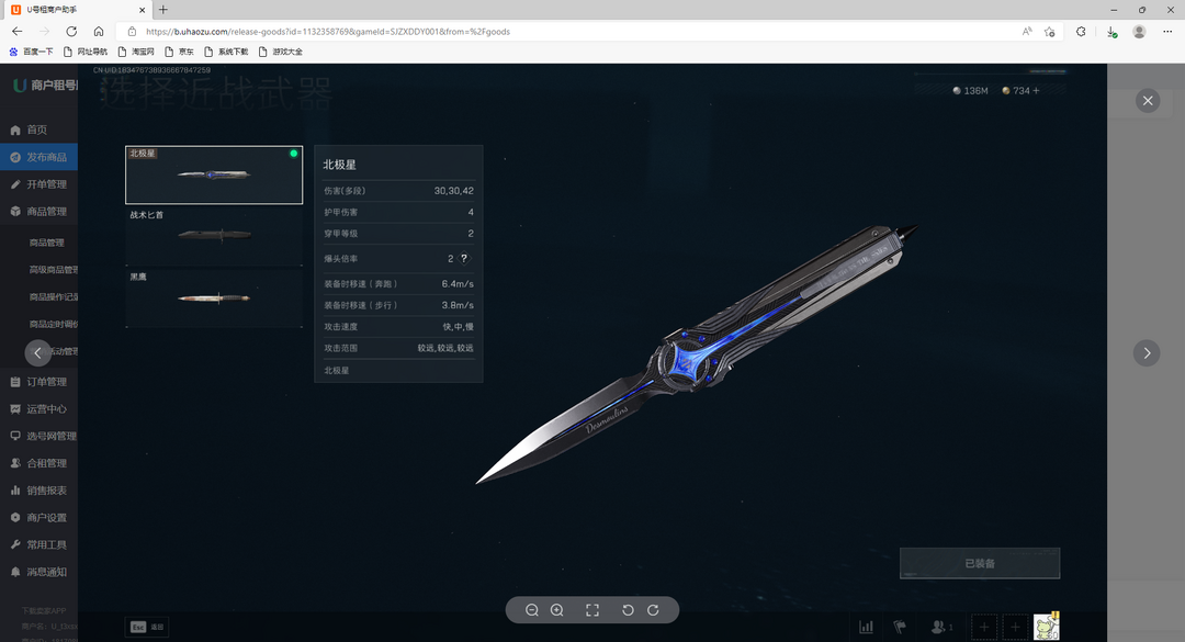 装备描述:满体力满负重露娜红皮北极星捆绑包押金结束退