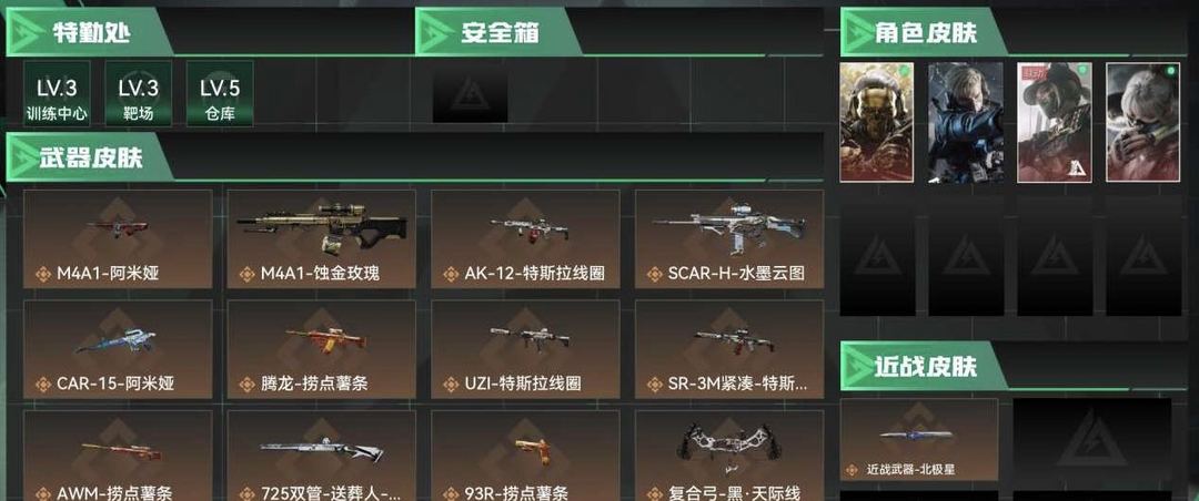 装备描述:干员皮肤】红狼蚀金玫瑰,蜂医送葬人无题密令,露娜黑天际线,骇爪水墨云图;【近战皮肤】近战武器-北极星;【步枪皮肤】M4A1突击步枪-阿米娅,M4A1突击步枪-蚀金玫瑰,AK-12突击步枪-特斯拉线圈,SCAR-H战斗步枪-水墨云图,CAR-15突击步枪-阿米娅,腾龙突击步枪-捞点薯条,SCAR-H战斗步枪-囚徒,ASVal突击步枪-典狱官,腾龙突击步枪-无垢;【冲锋枪皮肤】UZI冲锋枪-特斯拉线圈,SR-3M紧凑突击步枪-特斯拉线圈,SR-3M紧凑突击步枪-荒野求生,MP7冲锋枪-无垢;【射手步枪皮肤】PSG-1射手步枪-无垢;【狙击步枪皮肤】AWM狙击步枪-捞点薯条,SVD狙击步枪-荒野求生,SV-98狙击步枪-林中猎手,R93狙击步枪-竞赛选手;【霰弹枪皮肤】725双管霰弹枪-送葬人-无题密令;【轻机枪皮肤】PKM通用机枪-蝮蛇,PKM通用机枪-荒野求生,M250通用机枪-囚徒;【手枪皮肤】93R-捞点薯条;【复合弓皮肤】复合弓-黑·天际线;【挂饰10】挂饰-蚀金玫瑰,挂饰-黑,挂饰-阿萨拉喷火兵,阿萨拉机枪兵,挂饰-磁吸炸弹,挂饰-枪匠,挂饰-特斯拉线圈,挂饰-阿米娅,挂饰-来点