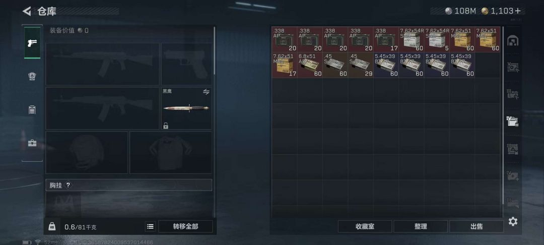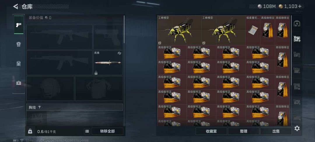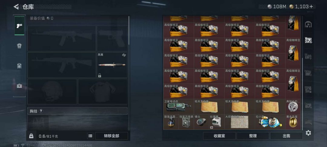 亿级哈夫币 一红皮,五金皮,全干员,108m哈弗币